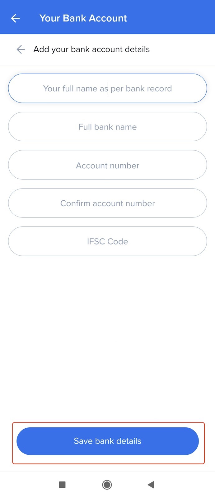 Step 4: Click on 'Save bank details'