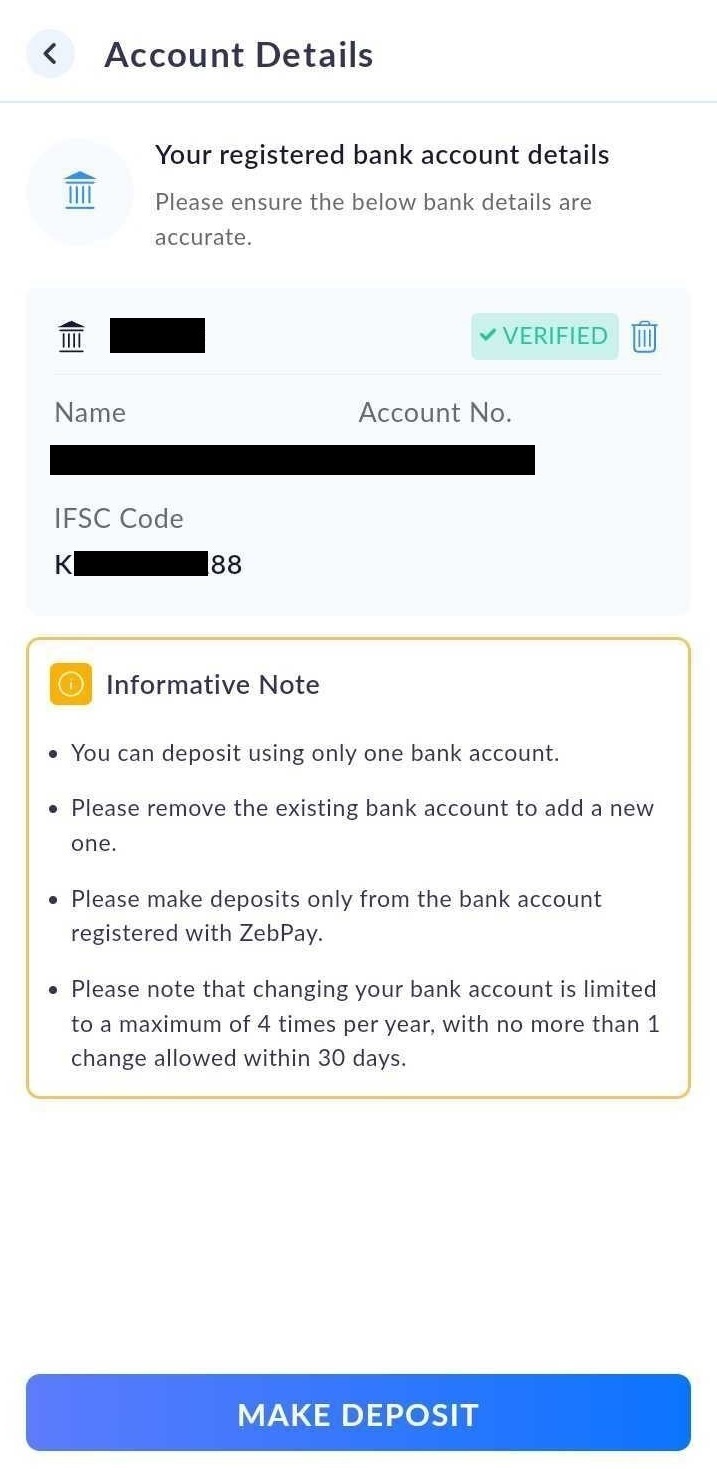 To ensure compliance with regulatory guidelines, it's crucial that the ZebPay account you register is in your name and is an Individual Savings Bank account. Please note that certain account types are restricted from registration as mentioned below.